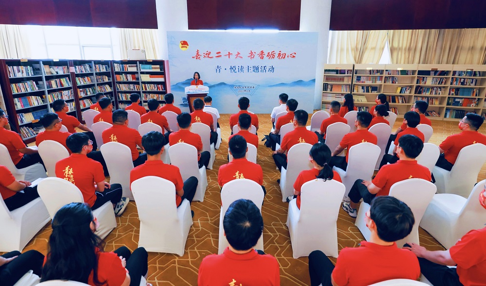 活動中,青年代表黃陳陳首先領(lǐng)學(xué)習(xí)近平總書記《論黨的青年工作》重要篇目—《廣大青年成長成才要勵志勤學(xué)、加強(qiáng)磨練》;3位青年代表依次上臺進(jìn)行好書推薦,分享了個人讀書心得;4位青年代表共同誦讀了紅色經(jīng)典作品《紅船,從南湖起航》;現(xiàn)場宣讀了青年大學(xué)習(xí)“十百千萬”行動評選結(jié)果,向2021-2022年“青年大學(xué)習(xí)”優(yōu)秀組織單位及部分“學(xué)習(xí)標(biāo)兵”代表進(jìn)行了頒獎,并贈送了《論黨的青年工作》書籍和讀書卡。