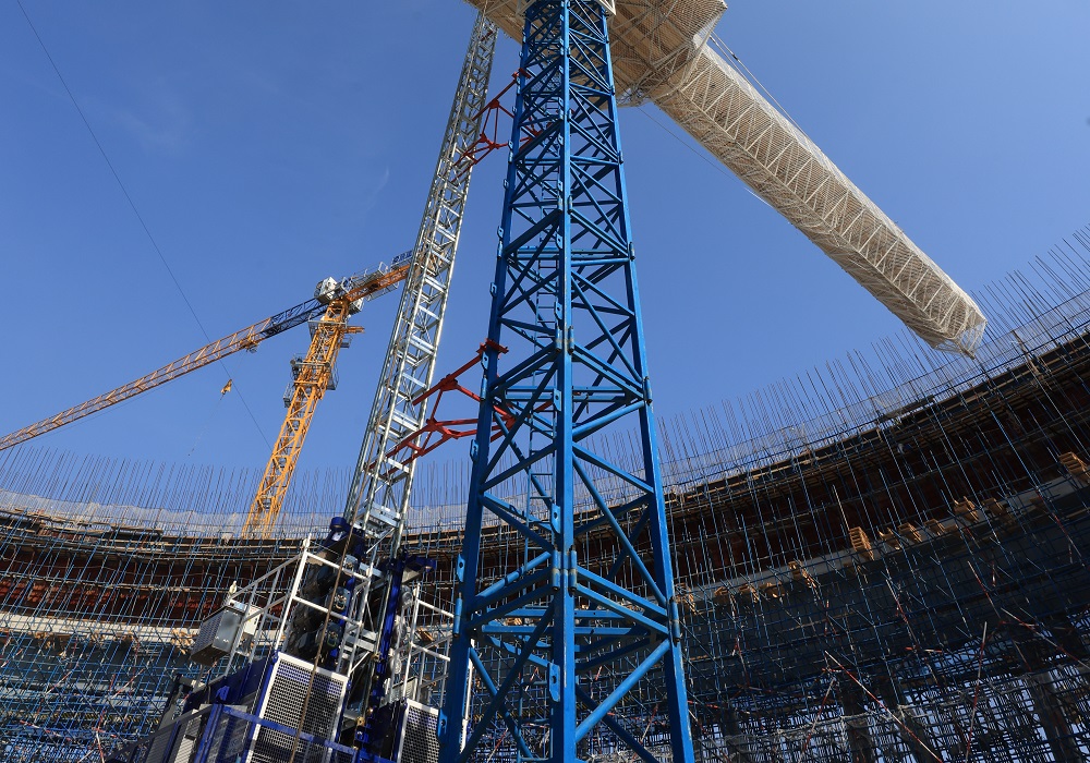 聚能發電公司2×660兆瓦超超臨界機組工程項目冷卻塔施工現場。(陳 彪 攝)